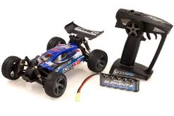 A strong shaft drivetrain and sealed gear differentials get the power to the ground through all four wheels for amazing stability and handling. Sharing many of the same parts as other vehicles in the iON range, the iON XB is fitted with a sleek, aerodynamic racing buggy body and a large rear wing for added traction. Low-profile studded rubber tires provide grip and control, aided by oil-filled shock absorbers.